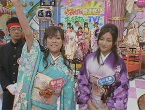やっほ〜〜いぃ。 昨日に続いてタケシお兄さんだぞぅ〜。 flightさんはしばらく復帰できないぐらい落ち込んでいるから、その間はタケシお兄さんががんばっちゃうぜ! みんなよろしくねぇ〜。 そうそう、タケシお兄さんはまだ見てなくて噂でしか知らないんだけど、 今、中野が凄いことになっているらしいよ。 昨日、中野サンプラザで2005年のハロプロコンサートが始まったんだ。 そこでとんでもないことが起きているらしいんだ! 青島刑事も言っていたよね。 「事件は会議室で起きているんじゃない、現場で起きているんだ!」って。 その言葉を借りると、 「事件はネット上で起きているんじゃない、現場で起きているんだ!」 どんな凄いことが起きているか気になった? 教えてあげな〜い。うふふ。 タケシお兄さんもまだ「そろ凄いこと」を見たわけじゃないからな〜。 ???? 「そろ凄いこと」???????? しっしまった〜〜。 気にしちゃだめだよ。タケシお兄さんの間違いだから。 「その凄いこと」って書いたつもりだったんだ! ちょっと興奮して書き間違っちゃった(笑) もしかしてみんなもうわかっちゃった? よし、隠してもしょうがない。 みんなに教えてあげる。とっても凄いソロニュースを。(また間違えた〜) ここからはネタバレね。(もうしてしまっているが) 見たくない人は、ここから下は見ちゃダメよ。 「その凄いこと」とは……。 えりりんがステージに一人っきりで唄っているのだ! ソロパートがあるんじゃない、ソロなのだ。 ほぼ一曲全部ソロなのだ! ![]() 事件はネット上で起きているんじゃない、現場で起きているんだ! ネットで情報を仕入れているだけでなく、晴舞台を現場に見にいこうよ! 中野は明後日で終わりだけど、来週は大阪、再来週は名古屋だぜ! えりりんお姉さんのソロをみんなで見にいこうよ! 何を唄っているかって?? ちょっとセクシーに、「えろりん、えろりん、えろりんゴール」だよ。(笑) そんなえりりんお姉さんを見ちゃった日には、僕もゴールを決めて、カズダンス踊っちゃうよ。(爆) flightさんは明日、明後日と見にいくらしいよ。 元気なく落ち込んでいるflightさんも元気になるのは間違いないね。 ということは…タケシお兄さんの出番は今日で終わり?? また遊びに来るからね。次にきたときは、みんなでえりりん体操しようね。 じゃ、グッチャー | ||