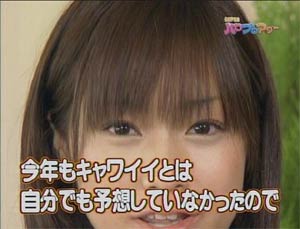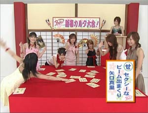 DVDマガジンvol.2より・・・ 買うつもりなかったんですけど・・ ・カルタ大会でなっちがえりりんを見ている目が… ・矢口の物まねをしていて、それが評判。。。 ・あいぼん、ごっちん、矢口と絡んで・・・ なんて言うものだから、つい買ってしまった。 こういう衝動買いしているから、年間50枚近くCDなりDVDを買っているのだ。。 えりりん見たいからしょうがない!
