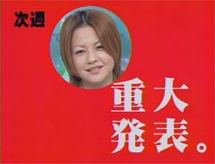 えっと… なんて言ったらいいのか… 頭が軽くパニック状態でして… 直接見ているわけではないから… 人から聞いただけだし… 今日実際に見てから話します… 姉さん!事件です!!(高嶋政伸風) 事件はWEBで起きているんじゃない横アリで起きているんだ!(踊る風) まだ2005年も一ヵ月しかたっていないのに、 全世界を揺るがす今年最大のニュースが…。 いや今世紀最大と言っても過言じゃない! なんと。。。。。 えりりんが ![]() 詳細はコンサートレポをマテ。 | ||