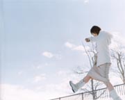 「こういう表情ができるのか・・。」これらのカットを見たときの僕の感想です。 写真集発売前は見るのが怖かった。2004年12月9日の日記から一部抜粋。 亀井絵里ちゃんのかわいさってなんでしょう?人それぞれ感じるところは違うと思いますが、 僕は「仕草」だと思っています。静止画―写真、画像―ではえりりんの可愛さを表現しきれないと思うんです。写真集を見て、本当のえりりんはもっと可愛いよって思っちゃうと思うんです。これは僕がえりりんのことをわかっているつもりだったことを意味しています。 何にもわかっちゃいなかった。 えりりんのポテンシャルを低く見積もりすぎていた。 「ダメだしする!!」とか息巻いておいて、絶賛ばっかりか?? これじゃ、ダメだ・・・ というわけで、ここからは少しもの申す。 僕の好みの問題というか、個人的な希望なのですが、せっかく冬に出した写真集なのだから、秋〜冬を感じさせるような服を着て、同じく秋〜冬を感じさせるような場所で撮影したカットが欲しかった。 これは昨年発売されたなっちの写真集「出逢い」からのワンカット。こういったコートやセーターなんかを着て、「冬」をバックにしたカットや、