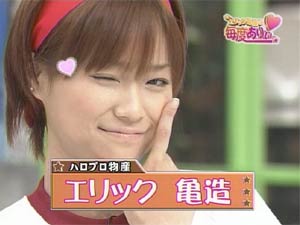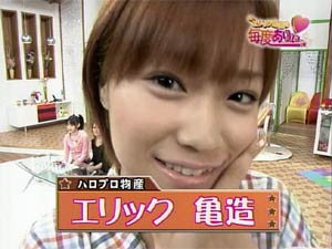 明日、10/31はハロウィン。 今日、放送されるハロモニ。の毎度ありぃでは、エリックはハロウィンのコスプレで登場予定。(テレビ東京のハロモニ。サイトの次回予告より。) ”ハロウィンのコスプレ”という表現がおかしいな。。 ハロウィンそのものがコスプレ(仮装)だし。 次回予告の画像を見る限り、エリックは魔法使いで登場。 ということで、魔法使い亀子を先行公開! ![]() えりりんって実は魔法使いなんですよ。 みなさん知らなかったと思いますが、”本物”の魔法使いなんです。 いったいどういう魔法が使えるのか? 実は、使える魔法は一つじゃないんです。 魔法使いの魔法だけでなくて、僧侶の魔法も使えます。(謎) ということは、魔法使いじゃなくて賢者ということか!? いったい、どんな魔法が使えるのか??? それは次の日記で紹介します。 ![]() エリックはかぼちゃの格好はしていませんが、(かぼちゃはさゆみん) おまけで、ハロウィン亀子パート2。 |