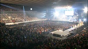 彼が配ったもの以外にも、多くのまこっちゃんファンが「マコ」や「小川麻琴」という文字をサイリウムで作っていました。 アンコールの際には、スタッフが気を利かせてくださり、これらのサイリウムをオーロラビジョンに映し出してくれました。 会場はそのサービスに大盛上がりでした。 昼、夜、両公演ともMC中にみんなでハッピーバースディを大合唱。 まこっちゃんの嬉しそうな表情が印象的でした。 泣きそうな雰囲気でしたが、カメラに向かってピースするなどし、泣かないように努めて明るく振る舞っているように見えました。 「聖誕祭いいなぁ〜〜〜。うらやましいぃぃぃ。」 エリザベスの時期はコンサートがないので、えりりんにみんなで唄ってあげるってことができないんですよね。 えりりんが娘。を卒業してソロとなり、クリスマスディナーショーをやるまで待つしかないですね。 その際はクリスマスに開催するのではなく、エリザベスに開催して欲しいな。 そして、できれば「クリスマスディナーショー」じゃなく「エリザベスディナーショー」というタイトルでお願いします。(いったい何年後の話だろう?) いつの間にかコンサートレポがエリザベスネタになってる。。。(汗) 続きはコンサートレポ第二弾〜流れ星を見たら〜♪にて | ||