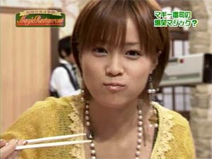 これ以外にも、 モシャス…モノマネをする魔法。 えりりんは似ていないけど。 ヒャド、ヒャダイン、ヒャダルコ、マヒャド…冷気で相手を凍らせる魔法。 えりりんのギャグは寒すぎるぜ!! パルプンテ…何が起こるかわからない魔法。 えりりんの次の行動が読めません。 メダパニ…混乱させる魔法。 えりりんの言動を理解しようとすると混乱します。 イオ、イオラ、イオナズン…爆発させる魔法。 えりりんもたまには”オ○ラ”ぐらいします(笑) マホトラ…魔力を吸い取る魔法。 財布からどんどんお金がなくなっていきます(汗) ギラ、ベギラマ、ベギラゴン…雷の魔法。 えりりんはギラを使えません。使えるのはミ○ティです(爆) メラ、メラミ、メラゾーマ…炎の魔法。 えりりんはメラを使えません。 さゆみんに対して僕がメラメラします! 番組の内容に触れていない・・・・(汗) | |||||||