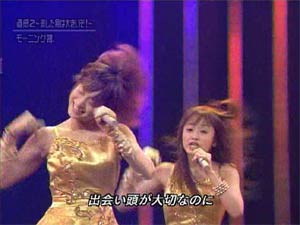 昨日、品川ステラボールに美勇伝のコンサートを見に行ってきました。※美勇伝失恋し、瀕死の重傷を負っている僕に「そんなの忘れて元気に行こうよ!」と友人が誘ってくれたんです。浮気でなく傷心コンサートってやつです。(笑) ステージで唄っていたのは三好えりりんでした。 ℃−uteの梅田えりりんもステージで踊っていました。 えりりん違いだっつーの! 大阪では本家えりりんがステージで頑張って唄い踊っているというのに僕は何をやっているんだ!という罪悪感を感じ、心を痛めながら観てました。 心を痛めながら…ではなく心ここにあらずの上の空かな?? そんな上の空だった敵情視察レポ。 美勇伝 ライブツアー2005秋 美勇伝説〜クレナイの季節〜in 品川ステラボール 敵情視察レポ第一弾〜水着じゃん!〜 このツアーの大きな特徴を三つ挙げるとすると、 ・スタンディングのライブであったこと ・美勇伝の単独コンサートであったこと ・美勇伝のオリジナル曲ばかりの非カラオケコンだったということ ●スタンディングのライブ スタンディングのライブは二年半前のミキティソロコンサート以来。 そのミキティコンサートはすっごく楽しかったし完成度が高かったのですが、その一方で、客席は乗車率500%ぐらいの満員電車状態で、それはそれはひどい有り様でした。 姿勢を変えることはもちろん、腕を5cmぐらい動かすのもきついようなスタンディングライブ。「もう二度とスタンディングは行かない!」と思っていたのですが、今回の美勇伝ツアーはそんなこともなく、 動けるスペースもあり好感が持てました。(前の方はすごかったらしいですけど) スタンディングであることを意識し、”ライブ”色の強い演出がありました。 美勇伝のメンバーが赤いタオルを持ち、頭の上でぐるぐる振り回すというダンスの曲があったんです。 矢沢永吉さんのライブでタオルを上に放り投げるという有名な曲があります。あれを彷彿させるような、ロックバンド色が出ていたライブでした。 観客はサイリウムを持った腕を振っているだけでしたが、次のツアーなどではタオルを持つようになるのでしょうか? さくら組のさくら満開でみんなが扇子(うちわ)を持って踊ったように、簡単なものを持って一緒に踊るというのは楽しいかもしれませんね。娘。ツアーでも何か一曲そういうのを取り入れて欲しいですね。 ●衣装 かなりの回数、衣装替えをしていましたが、そのうちの一つに露出度の多い衣装がありました。 ”まるで水着のような衣装”と比喩したいですが、”のような”ではなく、もろ”水着”と言っても差し障りのないような衣装でした。 あれを娘。ツアーで絵里ちゃんが着ていたとすると、僕はとてもじゃないけどまともに見れません。というかぶち切れる!!(マジな人コワー) まあ、セクシーをアピールしたという側面と、ライブ色を強めたかった側面があったのだと思いますが、それにしても…と考えさせる衣装でした。 長くなりそうなのでレポ第二弾〜カラオケコンもありなのかも〜に続く |