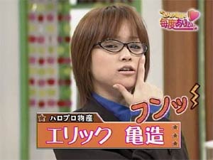 モーニング娘。コンサートツアー 2005秋 バリバリ教室〜小春ちゃん いらっしゃい!〜in群馬県民会館&総まとめ レポ第一弾〜まっ俄然強め〜 ![]() なつかしのセーラー亀。今年の六月のことでした。 ”強そうな言葉”から連想する言葉として、えりりんが言った言葉。 「がぜん強め」 この時点では「俄然」と漢字じゃなかったことに今気づきました。 これが「俄然」と漢字になったのは、毎度ありぃからですね。 この何気ない一言が、コンサートのMCで一つのコーナーになるとはこのときは誰も予想できませんよね。 この秋ツアーのどの公演からかわからないんですが、MCでえりりんが「俄然強め」を披露するのが一つのコーナーとして定着しました。 全国ツアーであることを生かし、コンサート開催地の方言で「俄然強め!」を披露してきました。 千秋楽のこと・・・ 「亀ちゃんのいつものコーナー。最後を締めてよ!」 とメンバーにあおられたえりりんは、「私が「まっ」って言うのでそれに続いて、みなさんでやってもらえますか?」と言い、会場全体で俄然強めをすることになりました。 会場全体でやった「まっ俄然強め!」は結構揃っていて成功しました。 ここまではよかったんですが・・・(汗) ナゼかその直後にえりりんはリアクションを何もしない。。。。 その結果、会場全体がすべったような雰囲気に包まれ「シラ〜」な展開になってしまいました。さっすがえりりん!自分が寒いだけでなく、2000人で披露したギャグを寒くさせてしまうとは!(笑)その辺の芸人でもできないです! ![]() なるほど・・・ようやくこれの言葉の意味がわかった。(笑) えりりん語録といえば「俄然強め!」以外にも、「チャイコーです」も披露していました。まさか・・・「チャイコーです」を言ってくれるとは・・・。 僕は感無量です!(大げさ) 「チャイコーです」が何か分からない方は、当サイトの名言集をご覧下さい。 えりりんは僕が見たところ、娘。の中で一番可愛く、一番輝いていました! さて、ここで問題。 「僕が見たところ娘。の中で一番可愛く、一番輝いていました!」 の発言に大きな矛盾、もしくは間違いがあります。さて何でしょうか? 答えはレポ第二弾〜先輩として・・・〜で発表します。 さぁみんなで考えよう! |