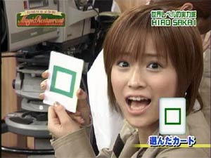 種がなんなのか?、今、カード変えた!という目で見てしまう自分が悲しい。 そういう目で見てるから、種が分かってしまって楽しめないんでしょうね。 理系人間ってどうしてこういうタイプの人が多いんでしょうね? 「わっすごい???なんで??」と純真な気持ちで見たい・・・ カードを変えてもイイよ!と促されるままに、変えてしまうえりりんがグッド! 「優柔不断」ではなく「素直」と言ってください! ところでハロモニ。って最近、モーニング娘。を知らない人でも楽しめる番組作りしていますよね。僕はそう感じます。 デート企画をして旅番組風にしたり、このようなマジックをやったり。いい傾向だと思う反面、ファンにとっては少し物足りないですよね。まあ、絵里ちゃんファンは毎度ありぃがあるから随分救われていますけど。 | ||||||||||