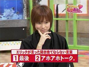 で、これで終わりかと思いきや、えりりんのコメントが載っているのだ! 注目すべきところは、 ・毎度ありぃはアドリブを入れている。 ・最後のダンスはその場でパッと考えて踊ることが多い。 ・(エリック亀造は)最近”素”に近くなっている。 ななななっなんと!!! ”エリック”は最初の頃の方が”素”に近いと思っていたのに。。。 最近の壊れっぷりを見て、エリックというキャラを確立していっているんだなぁ〜なんて思っていたのに、あれがえりりんの”素”か・・・(汗) だったら、まだまだハロモニ。の他のコーナーや他の番組では自分を出せていないってことですね。”素”を出すことがいいか悪いかはこの際おいておいて、俄然積極的にはじけて行って欲しいですね。 昨晩放送された、一人芝居の”おとなしい”えりりんも好きなんですけど。 | ||||