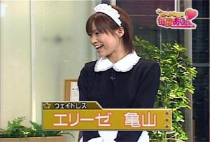 ロシアの妖精、マリア・シャラポアがウィンブルドンで快進撃を続けている。 クレーコートだとその力を発揮できないのに、芝だと能力120%。 あの打点の高さから放たれる角度のあるサーブはなかなか拾えない。 日本の妖精、亀井絵里も負けてはいない。 背はシャラポアの方が高いけれど、足もシャラポアの方が長いけれど、スタイルもシャラポアの方がいいけれど、 セクシーさでもシャラポアに負けているけれど、年齢差が二歳とはおもえないぐらいシャラポアの方が大人っぽいけれど、 キャワさは圧勝! キャワさだけでなく、シャラポアに負けず劣らずのスーパーサーブも打てる。 これがそのスーパーサーブだ!