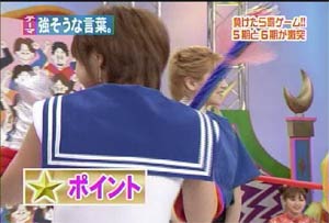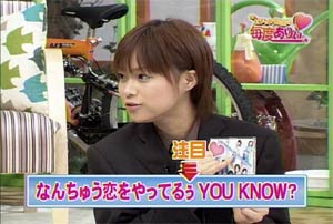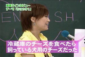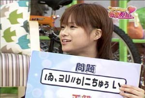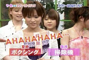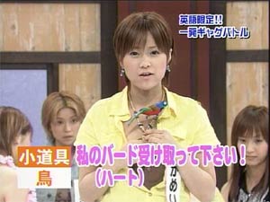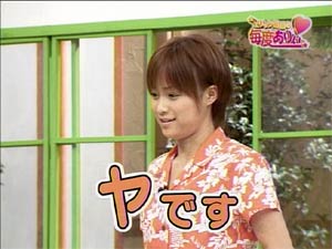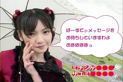 Strike while the iron is hot ! 「鉄は熱いうちに打て」のことです。 鉄は熱いうちに打つからこそいろいろな形になる。人間も、まだその精神が柔軟なうちに鍛えよ、の意。 また、物事はまだ関係者の熱意がさめないうちに手をうつべきである、の意生ものは新鮮なうちに調理しておかないと。。。(爆) というわけで。。。本日、三回目の日記いっちゃいます! 其の弐の日記で大量の画像を貼ってしまったので、本日三回目はテキストのみで、軽く、かるーくいきます! 本日のハロモニ。は言葉柔道。(今回はこういうタイトルではないけど) このコーナーはハロモニ。のコーナーでも、一、二を争うぐらい僕のお気に入りです。なぜなら、えりりんのよさが全開だから。 えりりんは勉強ができない「アフォ」な子ではないんですよね。(たぶん) 前回の放送(2003年9月かな)では、ことわざもスラスラでてきて、「おおおお」と感じさせるところもあったし。 また、そういった面だけでなく、その全く逆の、「ちんぷんかんぷん」なえりりんも見ることができる。 その「ちんぷんかんぷん」で、えりりんならではの世界観を楽しむことが出来る。 「それは明らかに間違っているだろう?」「何、その回答は?」と突っ込むことができず、見ているものを絶句させてしまう、意味不明な言葉。 「言語明瞭、意味不明」なんて言われた政治家もいたが、まさにそれ。 今回も、そんなえりりんの本領が発揮された。 ”強そうな言葉”のお題に・・ 「がぜん強め」 ”イライラする言葉”のお題に・・ 「あと1分、あと2分、あと3分、あ、やっぱ5分…」 これだけ見ても何を言っているのかわからないでしょう? 状況がつかめないでしょう? そうなんです。何が言いたいのかわからない(爆) 見ているものの目を点にしてしまう、えりりんワールド。 自分の中では整理がついているんだろうけど(ついていないかも)、その思いついたことの一部分しか言葉にしないので、周りは理解できない。 しゃべり方、声が可愛らしいから、なおその発言がひきたつ。(笑) よく言う、「天然ボケ」とはちょっと違うんですよね。 決してボケているわけでもなく、頭が悪いわけでもない。 自分の考えはしっかり持っているけど、伝えるのがちょっと下手なだけ。 絵里<あの。。。私・・えっと。。。flightさんのことが・・・ flight<いいよ、言わなくてもわかっているよ。えりりん。 そう、自分の気持ちを伝えるのが下手なだけなのです。 僕はわかっています。僕のことを好きなことが。(おいマテ |