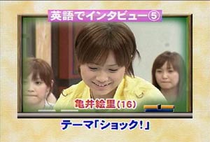 やっばい、あっばい、あっびゃい・・・ タイピングミスしてしまうぐらいやっばい。 まともにキーが打てないぐらいやっばい。 どこから攻めるか。。。右からか、左からか、ドリブルで中央突破か? いや、ここは中田並みのキラーパスで、一本のパスで切り裂こう! 今週のハロモニ。はえりりん特集??と思ってしまうぐらい、 えりりんがいっぱい。 さて・・・何からとりあげるか。。。 まずはこれからだぁぁぁぁ〜〜〜