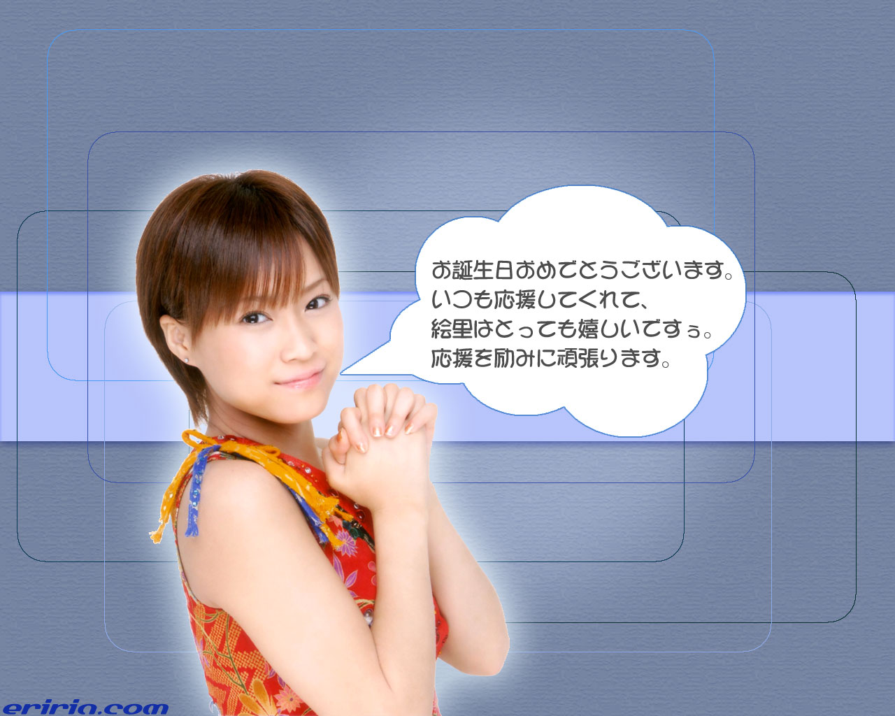 ![]() お誕生日おめでとうございます! ※注 ののたんの誕生日をフライングしたわけではありません 6月16日。今日は僕の知人の誕生日です。 サイトを通して、「おめでとう」を言っちゃった。(照れ) サイトを私的に使うのはこれを最初で最後にします。 その知り合いと僕の関係は…なんだろう? そうだなぁ、「ライバル」が一番しっくりくるかなぁ。(謎) 大多数のハロプロファンは、「○○ちゃんを好きな気持ちは誰にも負けない。僕(私)が一番想いが強い!」と思っていると想像します。 僕もそう思っているから、えりりんファンに対し変なライバル意識を持ち嫉妬をしてしまう。 えりりんに対し恋愛感情は持ち合わせていないと言っていても、そのように考えてしまうのだから、恋愛感情で娘。を見ているだろう多くのファンは、僕以上に自分以外のファンに対し嫉妬の炎がメラメラだと想像します。 想いが強いか弱いかの勝ち負けなんてないとわかっていますが、僕は上記の通り、「僕が一番えりりんを好き」と自負しています。 しか〜〜し、しかし、しかし、しかし。世の中は広い。 そんな僕も一人だけ「この人には想いの強さが負けるかも」と思う人がいる。 いや訂正!負けてはいない!(負けず嫌いですから) 僕と同じぐらいえりりんを好きで、応援している人がいる。 今日はその人の誕生日なんですよ。 改めてお祝いの言葉を贈ります。 お誕生日おめでとうございます! ![]()