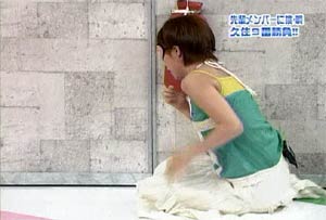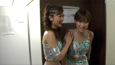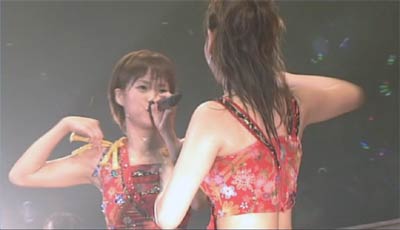 昨日に続いての登場!!タケシお兄さんだよぅ〜! 雨が降ってじとじと嫌な天気が続くけど、こういうときはえりりんお姉さんを見て、元気になっちゃおう! 今日は、石川お姉さんの武道館卒業コンサートのDVDの発売日だよぅ〜。 (正確には明日だけど。) みんなはもう買ったかなぁ?? flightさんは風邪でフラフラなのに、DVDを見始めると興奮して踊り出しちゃったぐらい元気になれるDVDだよ。 (見終わった後、リアルにぶっ倒れましたが。) みんなも早くゲットしちゃおうぜ! というわけで、今日はDVDのメイキング映像より、四コマ漫画ならぬ、13コマキャプ画をみんなに届けちゃいまーす。