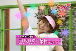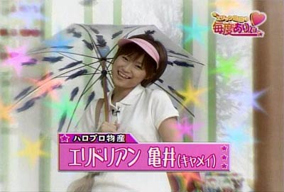どこからともなく聞いたことのあるあの曲が。 リンリンリリン リンリンリリンリン リンリンリリンリーンエリリリリン♪ リンリンリリン リンリンリリンリン リンリンリリンリーンエリリリリン♪ リンリンリリン リンリンリリンリン リンリンリリンリーンエリリリリン♪ 赤コーナー!100ポンド前後!(たぶん) モーニング娘。お笑いチーム、可愛がられ担当! チャンピオン!亀井絵里ぃぃぃ!!!! リンリンリリン リンリンリリンリン リンリンリリンリーンエリリリリン♪ リンリンリリン リンリンリリンリン リンリンリリンリーンエリリリリン♪ リンリンリリン リンリンリリンリン リンリンリリンリーンエリリリリン♪ (フィンガー5の恋のダイヤル6700ね・・・わかる??) 音楽に乗って、チャンピオンのえりりんが登場してまいりました。 現役のモーニング娘。お笑いチームの・・・