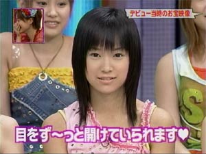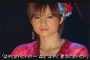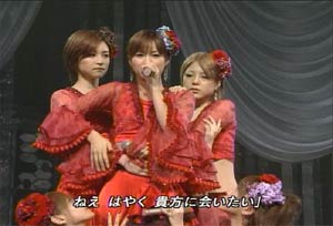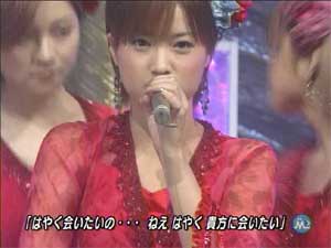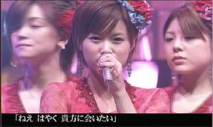 でもえりりんは一言も発しませんでした。(がっくし う〜〜〜ん。。。。残すはMステぐらいか・・・ それにしてもこのオープニングのえりりんの手の動きが・・・セクシー ![]() 「絵里ももう16歳なんですよぉ〜」 と言っているのかのよう。 今までとは違った意味で、ドキドキさせられちゃいます。 「でもまだ16歳なんですよぉ〜」というエリックのコーナーを始めとする素のえりりんとのギャップに、ちょっと戸惑い気味です。 ”かわいい”から”きれい”に、”少女”から”女性”に。 一瞬たりとも見逃せないですね・・・。まばたきしている間に。。。 | ||||