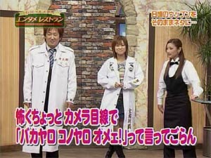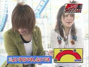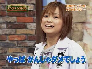 どうだろう?? 誰が考えたか、誰が演じたかという要素を除いて、ギャグそのものを味わって欲しい。 決してギャグそのものは寒くないように思う。 では、なぜ寒く感じるのだろうか??? ここから僕のコペルニクス的大発見の発表をしよう。 寒いのはえりりんのギャグではなく、えりりん自身なのだ!!(爆) 先日の座間公演でのこと。MCで三人目の役割をしっかり考え、「セクシーうえうえ」とギャグを言ってオチをつけたまではよかったが、会場中を一瞬にして静まりかえらせてしまった。 (2006/02/27 其の弐の日記参照) でもよく考えると、ギャグそのものは決して寒くないどころか、むしろ「ざぶとん一枚!」と言いたくなる出来ではないだろうか?ネタも旬だしね。 どんなにおもしろいギャグを言っても、えりりんが言うと寒くなってしまうのではないだろうかという結論に達した。 語尾が尻すぼみになり、徐々に声が小さくなっていってしまうので、観ているものはどこで終わりか判断がつかず、その結果どこで笑ったらいいのかわからないのだ。