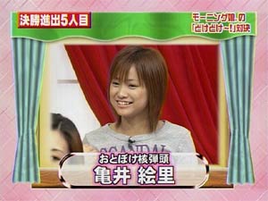 題して「みんなでえりりんに一発ギャグを考えてあげよう!」 寒い、寒くないの前に、ネタが少ないえりりんにみんなで面白いギャグを考えてあげましょうよ。掲示板に専用スレッドを用意しました。 ・えりりんにこんなギャグをやってもらいたい ・えりりんにはこのギャグが似合う ・さすがのえりりんでもこれなら面白いはず などなど。 みなさんのアイディアを募集します。 ある程度集まり次第、FC経由でえりりんにネタを提供したいと思います。 モーニング娘。のお笑い担当のえりりんに皆さんの熱い想いを・・・ヨロチク | ||||||||