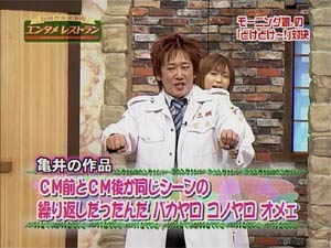 はいは〜〜い。先週に続いてまたまたタケシお兄さんだよぉぉ みんな元気かなぁ??? タケシお兄さんはブロークンハートでかなり凹み中。(笑えない) みんなエリバウアーしないとタケシお兄さんのようになっちゃうよ! お兄さんは食後に三回だったのを、起床後と就寝前にもやるようにして、一日五回エリバウアーするように増やしたよ!(意味不明) 先日、カメバウアーを紹介したけど今日はもっとすごいのを紹介するね!
