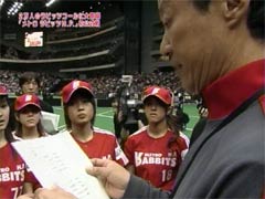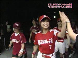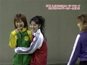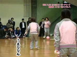 スポフェス行ってきましたぁ。疲れた・・・ふう。 MVPは1500m走に優勝した紺ちゃんでした。 あれ、おっかしいなぁ〜。 ちまたで噂の誤審(?)ってやつですか?(違) 僕の観た限りだとえりりんがMVPだと思うんですけどね〜。 まあ、僕の意見はあてにできませんけどね♪ だってえりりんしか観ていないしぃ〜(笑) 双眼鏡を持っていなくてもえりりんをすぐに見つけることができる僕が スポフェスに行けなかった方のためにえりりんの大活躍ぶりをレポしま〜す。 ●競技1 いちおう100M走 前回のタイムを参考にハンデをつけたなんちゃって100m走。えりりんは前回決勝進出したほどの俊足のため、最もハンデがある一番外の5コース。一緒に走ったのは 1コースが萩原舞ちゃん、2コースが岡田唯ちゃん、3コースが裕ちゃん、4コースが熊井友理奈ちゃんというメンバー。スタートして30mほど走るとコーナーでオープンレーンとなります。 清水宏保並みのロケットスタートを決めたえりりんは、オープンレーンに入る時にはハンデの分を縮めていました。しかし5コースであったためすぐに内側に入ることができない。 あそこで強引に内側に入ってしまうと”斜行”をとられ、平成三年秋の天皇賞でメジロマックイーンが降着したような事態になりかねない。しかし、そこは我慢して人に邪魔されない大外を一気にまくる。 直線に向くやディープインパクトを彷彿とする、まるで大空を駆け抜けているかのような豪脚を披露。上がり3ハロンは手元の時計でなんと33秒1。33秒台の末脚で一気に全員を抜き去り見事一着となりました。 言わなくても分かっていると思いますが、本命(◎)はえりりんです。(笑) ●競技2 キックベース えりりんはスタメンではありませんでした。まあしょうがないか。えりりんは球技苦手っぽいし。 すると、アイドル相手に容赦ない小学生チームの頑張りにより、二回表の守備でえりりん登場。サードの守備位置につきました。ここで同時にさゆがピッチャーとなります。 それまで相手チームのミスやポップフライでしかアウトをとれていませんでした。ランナー一塁の状況でピッチャーゴロ(だったと記憶しています)となり、さゆからえりりんにパス。 ホットスポットであるサードのポジションで、長嶋茂雄を彷彿とさせる華麗なキャッチングを見せたえりりんの活躍で見事サードでアウトをとることができました。 あのアウトはさゆえりコンビだからとれたんだね!(違) 攻撃面では一度だけバッター(キッカーっていうのかな?)になりましたが、ファーストフライ(だったと記憶しています)に終わりました。相手チームのピッチャーがボストン・レッドソックスのウェイクフィールドを上回るナックルボーラーだったことを 考えると、蹴ることが出来ただけでもすごいことです。 冗談はさておき真面目にレポすると、敗因は力の差という以前の問題で、ルールを理解していなかったことです。もう少しルールが分かっていればあれほどの点差にはならなかったと思います。ちなみに24対3で負けました。 アウトを一つとって、みんなで集まって喜びあってちゃダメです(笑) 個人的にはみんなで集まっていちゃいちゃ喜び合っているシーンを楽しんで観ていましたけど。 続きはレポ第二弾に続く。。。。 こんなレポでいいですか??? |