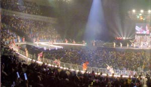 昨日、越谷のコンサート観覧に行ってきました。 前から四列目(実質三列通路席)で観覧してきました。 娘。たちはすぐ目の前にいました。 近くで観て感じたことは。。。 サイトに書くべきか、書かない方がいいのか、丸一日熟慮し書くことに決めました。 天の邪鬼なので人とは違った感想が言いたいだけです。(笑) モーニング娘。コンサートツアー2006春〜レインボーセブン〜in越谷 コンサートレポ第一弾〜高嶺の花〜 体調が悪かったわけではなく、また何か落ち込むようなことがあったわけでもなかったが、越谷に向かう道中の足取りがすごく重かった。 前週、座間で初演を観覧し、期待通りの内容だったのに足取りが重かった。 四列目という良席であるにもかかわらず足取りが重かった。 なんだろう??? たぶん、絵里ちゃんを近くで観るのが怖かったんだと思う。 いつもは絵里ちゃんだけを観ているが、昨日は観る自信がなかった。 そして、コンサートがスタートした。 いざコンサートが始まると僕の意志に反し(?)、いつものように僕の両目は絵里ちゃんをロックオンし追いかけた。ず〜っと、絵里ちゃんを観ていた。 公演中に愛ちゃんがこけたらしく、 そのことをMCで愛ちゃんが言っていたが、 どのあたりでこけたのか全く気づかなかったぐらい絵里ちゃんだけを観ていた。でも絵里ちゃんは僕の方をほとんど見てくれませんでしたけどね!(悲) 正しくは「何回か見てくれた。でも目が合いそうになると僕は目をそらした。」 なぜかって?? そりゃ。。。恥ずかしいから(爆) 近い距離で観て思ったことは、「コンサートは遠目から観ていた方がいいな」ということ。 遠目の席からであれば、なんとなくこっちを見ていてくれているなぁ〜という意識で観ることができる。それぐらいが丁度いいのではないかな。 高嶺の花だとわかっていながらも、手が届きそうな距離に観てしまうと錯覚してしまう。ただその錯覚はほんの一瞬であり、 夢が覚め我に返ると「近くても手が届かない遠い存在」であることを痛感させられてしまうのだ。 昨年、汐留のエコイベントで感じたことと全く同じであった。 距離が近ければ近いほど距離の遠さを感じてしまう。 ある程度の距離から「あれがモーニング娘。か〜」と観ている方が楽しめるのかもしれないですね。 だからといって、ファンである僕らとの距離感を縮めて欲しいとは思っていない。モーニング娘。には高嶺の花であり続けて欲しいと願っている。 みんな僕と同じようなことを思ったことがあるんじゃないかな? 近くにいるのに遠くにいるような距離感を感じたことってないですか? 最近ちまたで噂のAKB48などは、まだデビューしたばかりということもあり、遠くにいても近くにいるような距離感で観ることができるから、 僕のように距離感を感じた人はそちらに流れていってしまうのかなぁ〜なんてね! 僕は天の邪鬼なので人と違った感想を書きたいだけです。 近い距離で観て、「キャワ〜〜〜!!」なんて誰もが思うようなことを書きたくないひねくれ者なんです。 みんなと一緒で「キャワ!!」と観覧してましたよ(笑) と自分をフォローしておきます。 続きはレポ第二弾〜ダンス対決???〜にて |