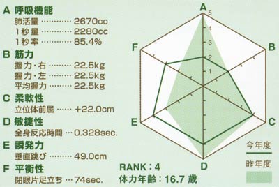 Hello! Project SPORTS FESTIVAL 2006レポ第三弾 スポフェスが終わってから2日が経ちました。 この二日間あることを考えていました。 ずっと考えていました。 考えに考えて、悩んで悩み抜いたあげく一つの結論に達しました。 誰がどう考えたって、えりりんがスポフェスのMVPだろぉぉぉ!(オイ! 紺ちゃんは確かに大活躍だったのでMVPの座は譲ってもいい。 でもMIP賞はどう考えたってえりりんじゃない!? ”MIP”って何の略か知ってます?? Most Impressive Player(最も印象に残った選手という意味)の略です。 7時間見ていましたが、えりりんしか印象に残っていないんですけど・・・ えりりん以外は全く印象に残っていないんですけど・・・(笑) えりりん以外がMIP賞をとるって納得いかないんですけど・・・(僕だけ?) 僕の心にはしっかり印象に残っているので僕がMIP賞を贈ります! そんなネタはさておき、パンフレットのえりりんを紹介します。 ![]() これがえりりんの特徴らしいです。 でも目立った新情報なし。全部知ってるし。 「いつでもめちゃめちゃ笑ってます」ってそのまんまじゃん。 最近小さい耳をなかなか見ることが出来ないので悲ちぃでしゅ。 ![]() 続いてこれがえりりんの体力データ。 追加情報を載せておくと、娘。に加入した当初に行った体力測定では、 肺活量 3160cc 握力 右21.8kg 左18.9kg 立位体前屈 +18.5cm 垂直跳び 31cm だから何?って突っ込まないでくださいね。紹介しただけですから。 立位体前屈が22cmってすごいですよね。僕なんて-30cmぐらいですもん! |