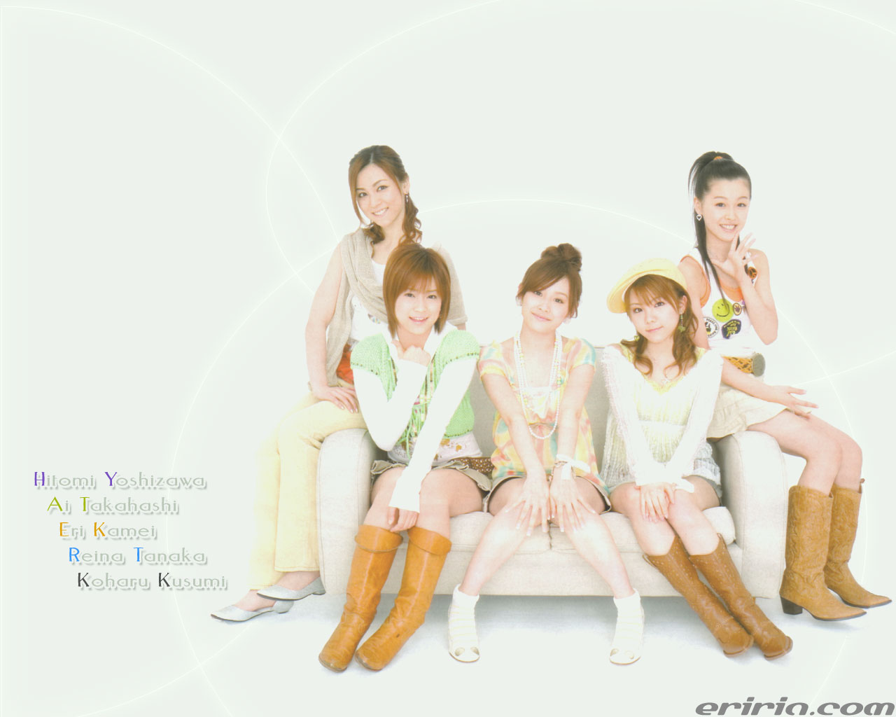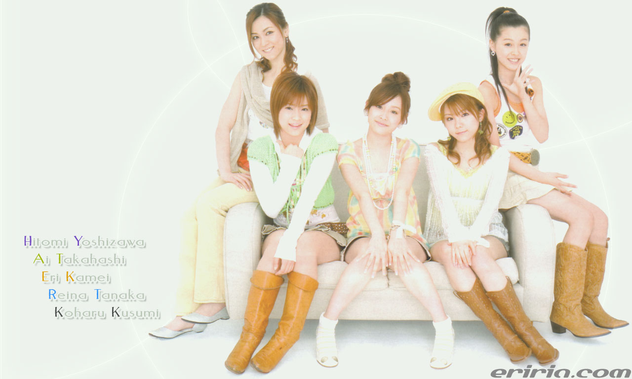 壁紙作ってみました♪ 小春ちゃんとよっすぃの靴を付け足してみました(謎) えりりんの服装って緑色が多いと思うのは気のせいですか? | |