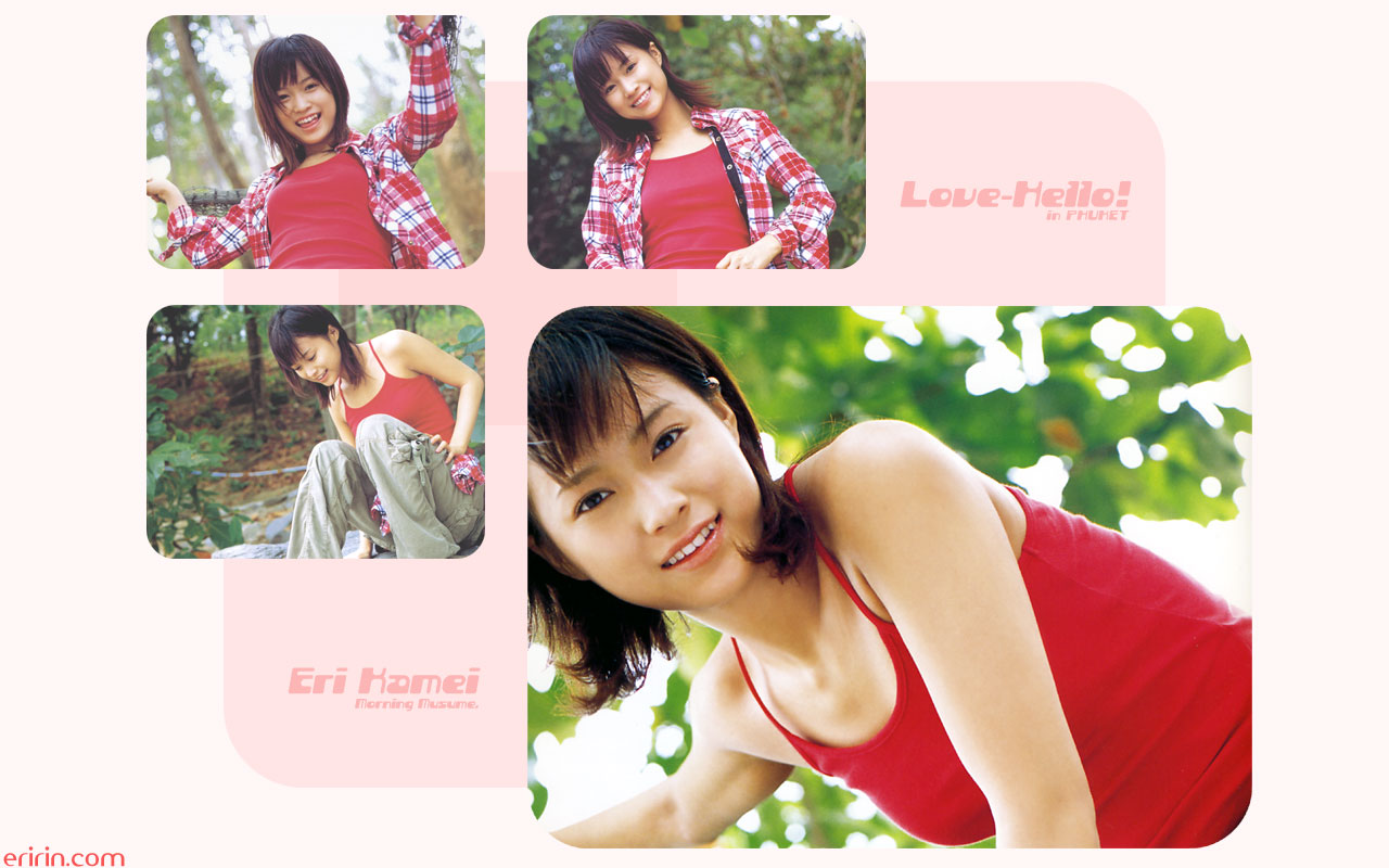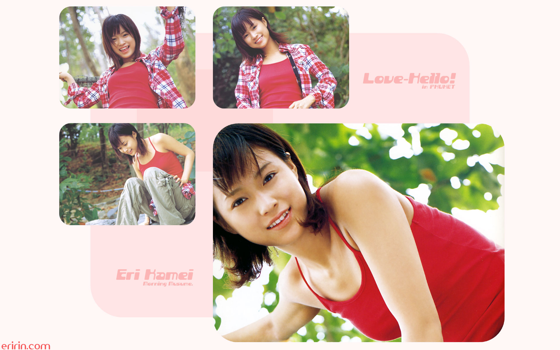 ![]() 以前から当サイトで取り上げていることですが、絵里ちゃんは笑うと目が細くなる傾向があります。その様子を笑福亭鶴瓶さんの名前を参考に笑福亭亀子と名付け、「鶴瓶さんに弟子入りしてお笑いを勉強したらどうだろう」などと 冗談っぽく書いてきました。鶴と亀、目が細くなる(鶴瓶さんは元々細いですけど)、などとおもしろいぐらい共通点があると思います。笑うと福が来るという意である笑福亭の屋号を是非絵里ちゃんにいただけないでしょうか。(笑) そんな冗談を書いていますが、絵里ちゃんの笑顔を見ていると幸せな気持ちになる(=福が来る)ことは紛れもない事実です。ただその一方で、「この笑顔は誰に向けられたものだろう?」などと考えてしまい、ドリカムの”笑顔の行方”が BGMとして脳内で流れることもしばしば。「思いっきり抱きしめたい♪この腕を伸ばして〜♪」なんてね。(苦笑) シンプルなものこそ絵里ちゃんのよさがよくわかる・・・というわけでラブハロ壁紙第三弾。 ![]()