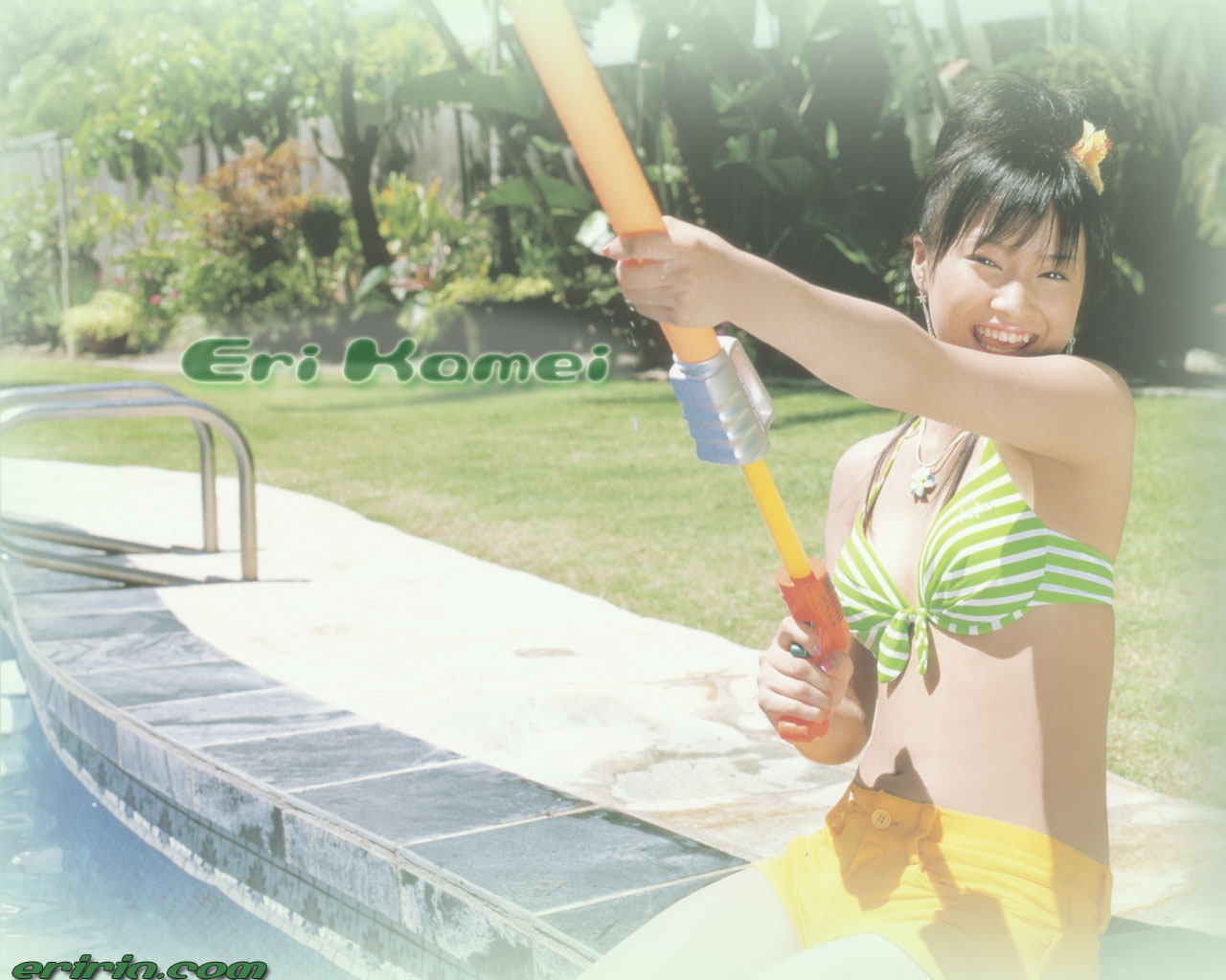今日はアロハロモーニング娘。の写真集の発売日だぞーん。 DVDも同時発売だぞーん。 そしてFLASHには先行カット(一日だけの先行)も掲載だぞーん。 えりりんの水着は”緑だぞーん。 〜えりりんのコメント〜 娘。全員で綱引きしたのはすごく思い出に残ってますね〜。 あんなに真剣に綱引きしたのは久しぶりでしたぁ(笑)。 ソロの水着で着た緑の水着はなんか自分らしくて好き! ![]() 1024x768はこちら 1280x1024はこちら というわけで即興で作った壁紙でした。 | ||