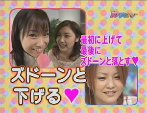 ちょっと遅れ馳せながら、先日放送の「うたばん」についての感想を少し。 放送前に、番組の内容がクイズだと聞いて、 また「アホネタかよ!」(言葉が悪くすみません)と、ちょっとがっかりでした。 もうそのネタいいよ!と思うと同時に、全員にスポットライトを浴びせ、それでいておもしろいコーナーにするにはこれが最良だよな、なんて考えました。 見終わった後の感想としては、 「えりりんちょっとしか映ってねー」 「侍キャワ」(笑)でした。 ![]() ![]() 早い話が消化不良。 なので一回しか見ていません。 でも放送から時間が経過して、ちょっと別の視点から見ると、久々におもしろかったうたばんではなかっただろうか?と考えるようになった。 それもこれも、ガキさんがいい味をだしていたことが最大の要因だが、ガキさん以外にもいい味をだしている娘。が多く、「番組としてのおもしろさ」は短い時間ではあったが、及第点をつけれる内容だったと感じた。 おもしろい番組であったと考えなおしたにもかかわらず、僕は二回目を見てない。そして個人的な感想は、「つまらなかった」番組であることにかわりはないのである。 絵里が映ったか、しゃべったか、活躍したかが番組の評価基準になってしまっている自分に気付き少し悲しい気がした。 少し話を変えて、コンサートの話。 コンサートのオープニングで、娘。のメンバーがかおりんから順に紹介されますが、 昔は推しメン以外であっても声をだしてがっついていたが、今はそれをしなくなった。絵里が出ているところだけ。いつからそうなったのか定かではない。 話をうたばんに戻します。 昔の僕なら、何回も繰り返し見たであろう。 なぜ見なくなったのか? 絵里への想いが強くなりすぎたのだろうか? それならいいんです。 でも、僕が感じたのは、「僕はもうモーヲタじゃないのかな?」でした。 「モーニング娘。が好きで、その中でもえりりんが好き!」という気持ちから、 「えりりんが好き!大好きなえりりんが所属するからモーニング娘。も好き」 になっているようです。 ちょっと前の僕に戻りたいって思いが少なからずあります。 盲目的に一人を愛するよりも、少しDDなぐらいがちょうどいいのかな〜 どうなんでしょう? えりりんがキャワすぎるからいけないんだ! えりりんが魅力的すぎるから、目を離せないから。 えりりんのせいだ!(ごるぁ!えりりんのせいにするんじゃねー) | ||